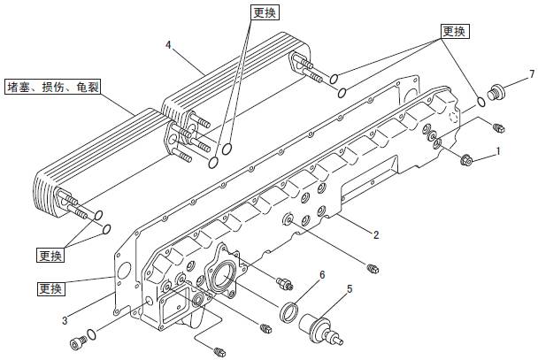 2.7 三菱S6R發(fā)動機(jī)潤滑油冷卻器、潤滑油恒溫器的解體