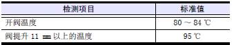 (2) 加熱水的同時用溫度表測量水溫, 測量閥開始打開和閥升高至標(biāo)準(zhǔn)值時的溫度。和標(biāo)準(zhǔn)值的溫度相差很大時,更換新品。