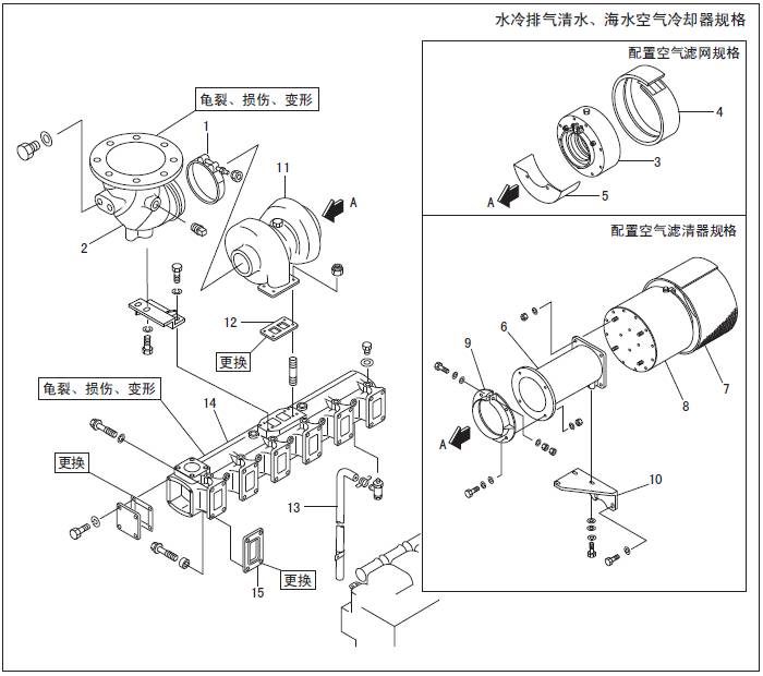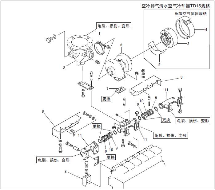 1.2 三菱S6R發(fā)動(dòng)機(jī)排氣系統(tǒng)的拆卸,檢測(cè)