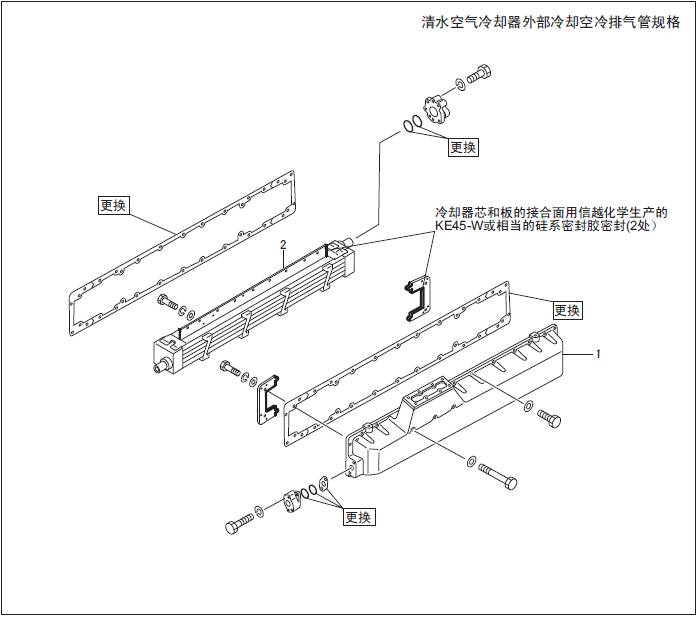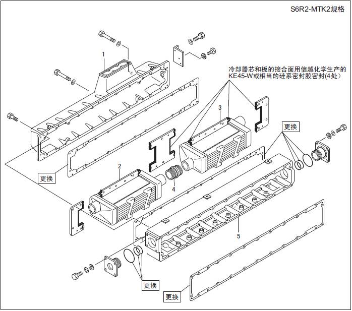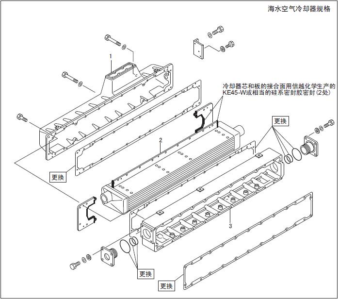 使用清水和使用海水的三菱S6R發(fā)動(dòng)機(jī)空氣冷卻器的材質(zhì)和結(jié)構(gòu)是不同的,處理時(shí)要予以注意。本型機(jī)器使用清水冷卻器。