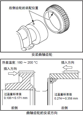 注: 通過加熱三菱S12柴油發(fā)動機曲軸齒輪拆出時,加熱溫度應在180ºC以下。