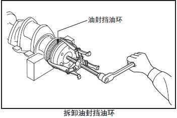 用齒輪拆卸器將三菱S12柴油發(fā)動機油封擋油環(huán)從三菱S12柴油發(fā)動機曲軸上拆出。