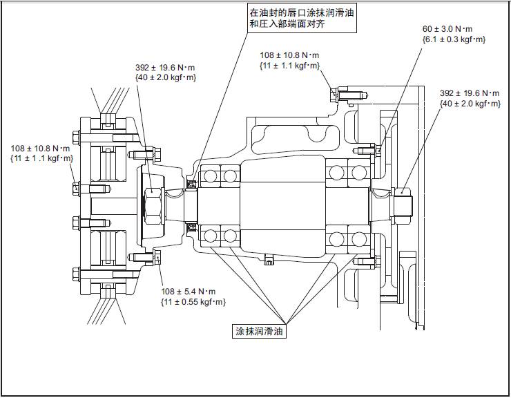 (7) 和驅(qū)動軸的鍵對準(zhǔn)后安裝驅(qū)動齒輪,用規(guī)定的扭矩緊固螺帽。