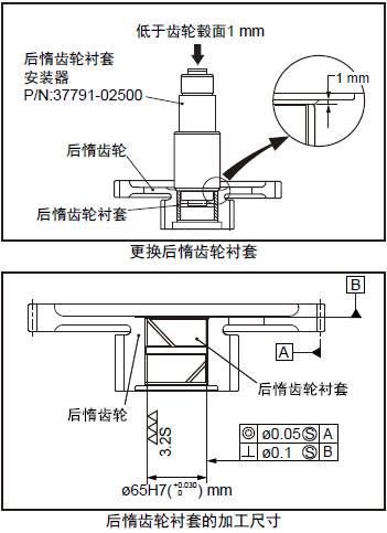 注: 更換三菱R16柴油發動機惰齒輪襯套后適用時,對三菱R16柴油發動機惰齒輪襯套的內徑進行鉸削加工。