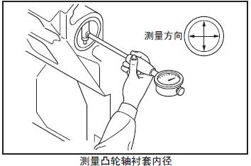 注: 測量內徑時,注意不要損傷三菱R16柴油發動機凸輪軸襯套的內面。