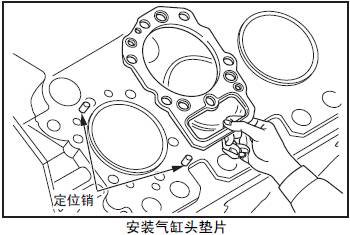 (2) 將涂抹液體密封膠后的氣缸墊片,對(duì)準(zhǔn)定位銷后安裝。