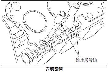 套筒的外表面涂抹潤(rùn)滑油后放入套筒孔內(nèi),使其緩慢座落在三菱R16柴油發(fā)動(dòng)機(jī)凸輪軸上。