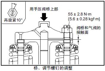 (2) 用手壓橋上部,使調(diào)節(jié)螺釘和另一側(cè)的閥桿上端面和橋的端面接觸。
