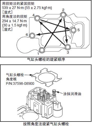 5.7.2 用角度法旋緊三菱R16柴油發(fā)動(dòng)機(jī)氣缸頭螺栓