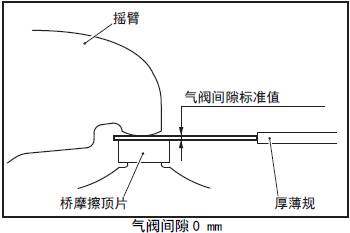 (2) 在搖臂和橋摩擦頂片之間插入和氣閥間隙標(biāo)準(zhǔn)值相同厚度的厚薄規(guī)。( 氣閥間隙0 mm)