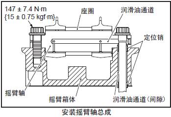 (2) 三菱R16柴油發(fā)動(dòng)機(jī)搖臂軸的銷孔和定位銷對(duì)準(zhǔn)后,將搖臂總成安裝在三菱R16柴油發(fā)動(dòng)機(jī)搖臂箱體上。