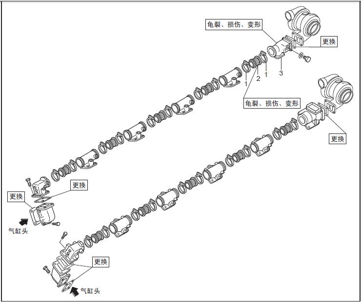 三菱R16柴油發(fā)動(dòng)機(jī)靜壓排氣管規(guī)格 排氣歧管的拆卸、檢測(cè)