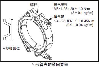 1 V形夾具2 饒性管 3 排氣歧管