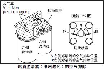 (3) 從放氣塞處排出的燃油不含有氣泡時(shí),按照規(guī)定扭矩旋緊放氣塞。