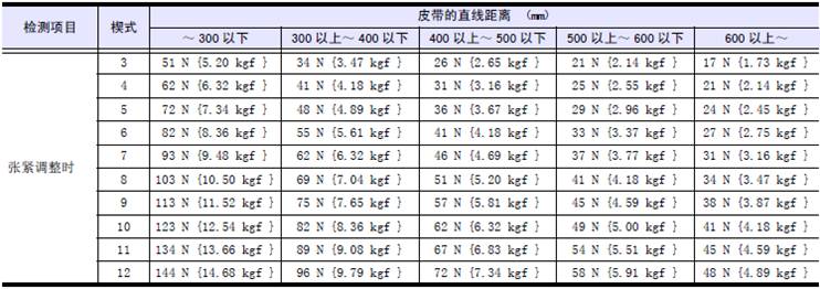 (2) 檢測(cè)皮帶的張緊力( 下陷量)。