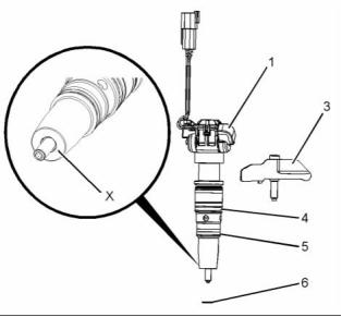 4. Remove electronic unit injector (1) and clamp