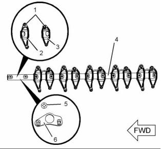 (1) Camshaft thrust plate bolts ....... 31 N·m (23 lb ft)