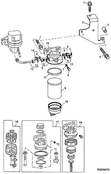 John Deere約翰迪爾強鹿6068 6.8L柴油發動機油水分離器零件圖冊