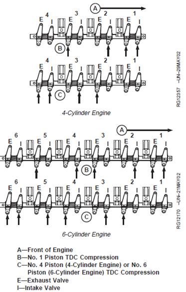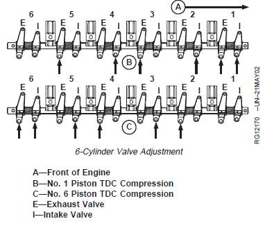 · No. 2, 4, and 6 exhaust and No. 3, 5, and 6 intakevalves on 6-cylinder engines.
