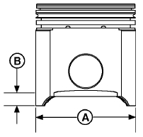 1. 在與活塞銷孔成 90°,距活塞底部 (B) 28 毫米(1.1英寸)處測量活塞裙部 (A)。記錄測量結(jié)果。