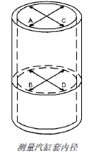 7. 比較 A、B、C、D 四個測量結(jié)果,確定汽缸套是否成錐孔或者不圓。