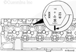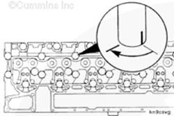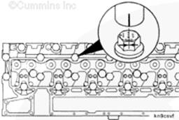使用服務(wù)軟件(零件號(hào) 3823921)檢查所有缸蓋螺釘?shù)拈L(zhǎng)度是否正確。
