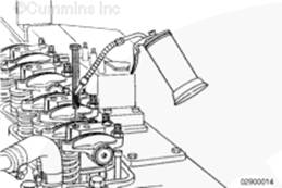 使用清潔的康明斯ISB5.9 G CM2180發(fā)動(dòng)機(jī)機(jī)油潤(rùn)滑 12-mm 軸座/缸蓋螺釘?shù)穆菁y和螺釘頭以下的部分。