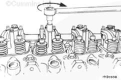 盤動(dòng)康明斯ISB5.9 G CM2180發(fā)動(dòng)機(jī)時(shí)擺動(dòng)搖臂;搖臂變緊時(shí),停止盤車。