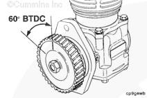 使用 1/2 英寸驅(qū)動(dòng)頭和康明斯ISB5.9 G CM2180發(fā)動(dòng)機(jī)盤車工具(零件號(hào) 3824591)旋轉(zhuǎn)康明斯ISB5.9 G CM2180發(fā)動(dòng)機(jī)(順時(shí)針,面對(duì)減振器),直到 6 號(hào)氣缸(針對(duì) 6 缸康明斯ISB5.9 G CM2180發(fā)動(dòng)機(jī))的進(jìn)氣搖臂開(kāi)始打開(kāi)進(jìn)氣門。