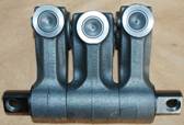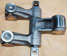 6.搖臂:構(gòu)成杠桿傳遞運動,現(xiàn)已采用新式的球面滑動平板搖臂,消除了與橋式壓板間的磨損,設有調(diào)整螺釘和鎖緊螺母;分為進氣搖臂 (1.3.5與2.4.6缸不相同,裝配時需選擇),|噴油搖臂、排氣搖臂 (1.3.5與2.4.6缸不相同,裝配時需選擇),搖臂軸裝配時有選擇性,F(xiàn)ront應朝向發(fā)動機前端,Rear應朝發(fā)動機后端,有“V”標示應朝下。