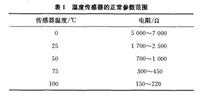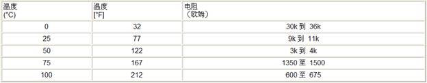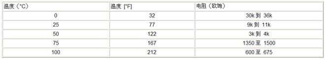 傳感器的電阻值隨溫度變化。如果傳感器的功能正常,觀察的讀數(shù)應(yīng)與下表數(shù)據(jù)進(jìn)行對(duì)比。