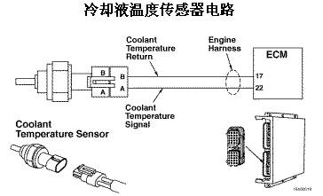 故障原因:在發(fā)動(dòng)機(jī)線束的 22 號(hào)冷卻液溫度信號(hào)觸針上檢測到的電壓低于 0.21 VDC。