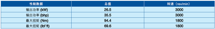 3000 rpm時(shí),功率達(dá)26.5 kW,35.5 bhp