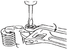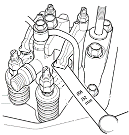不要在松開氣門橋的狀態下松開或鎖緊氣門調整螺栓螺母。用扳手固定氣門橋防止氣門桿彎曲。然后松開氣門橋調整螺栓的螺母。