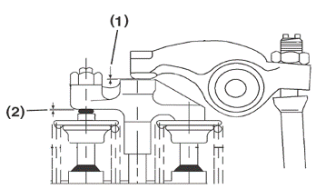 對于四氣門汽缸頭,兩氣門是由在兩氣門之間的單一搖臂通過氣門橋帶動的。在調整搖臂和氣門橋之間的間隙1前該間隙2應首先設置。