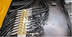 9個(gè)先導(dǎo)壓力傳感器位置由主閥上面移到駕駛室后面,如圖所示。由于先導(dǎo)管路順序發(fā)生了變化,所以電氣系統(tǒng)9個(gè)壓力傳感器線束走向和連接順序也進(jìn)行變化,先導(dǎo)線束從左側(cè)立板處分出,直接拉到先導(dǎo)閥塊處。但是同樣保證每個(gè)動(dòng)作壓力傳感器信號(hào)號(hào)碼和C8M一樣,