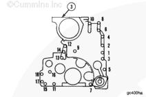安裝康明斯KTA柴油發(fā)動(dòng)機(jī)齒輪室蓋和相關(guān)部件。參考步驟 001-031。
