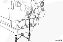 能夠拆下康明斯KTA柴油發(fā)動(dòng)機(jī)齒輪室蓋前必須先拆下主定位銷。使用滑錘 (33) 或 5/16-18 in 螺釘或螺桿和舊活塞銷拆下定位銷。前蓋的底部 (34) 上有 5 個(gè)螺釘,背部 (35) 上有 3 個(gè)螺釘。拆下底部螺釘 (34) 和后面的螺釘 (35)。