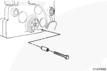 拆下將燃油泵驅(qū)動(dòng)固定到前齒輪室蓋上的 4 個(gè)螺釘。不需要從離缸體最近的驅(qū)動(dòng)底部上的雙頭螺栓上拆下螺母。參考步驟 009-011。