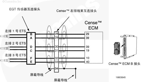 左排后渦輪增壓器壓縮機進(jìn)口溫度傳感器電路圖向 CENSE™ ECM 提供左排后渦輪增壓器壓縮機進(jìn)口溫度信號。