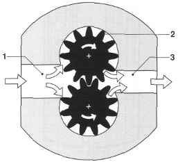 1-吸油端 2-驅動齒輪 3-壓力端