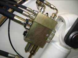 斷開左右動臂缸管路防爆裂閥塊平衡管線,接上一根帶有截止閥的管線,以便斷開兩缸無桿腔的壓力干擾,