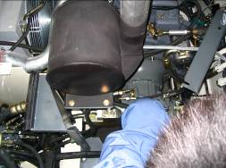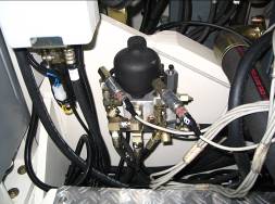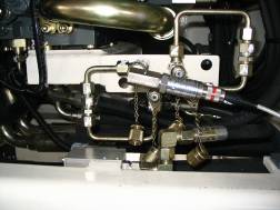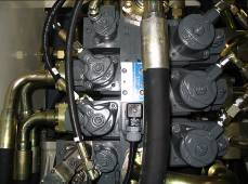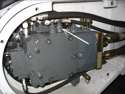 按下控制屏上“F3”鍵,和“兔子開關”按鈕,快速收回斗桿,讀出回油壓力,應為110 bar,如果不對,就調斗桿油缸上的節流閥,使之達到目的100 bar
