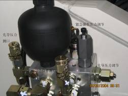將測試儀壓力輸入口1線接到事故操作壓力測點上,把先導閥塊上的事故手柄順時針打到垂直位置,把發動機轉速調到最高,測到的事故壓力是14 bar。測完后把事故手柄逆時針打到水平位置。