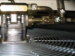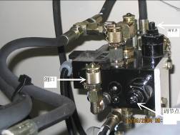 應為390 bar,否則調節工作閥塊動臂調節螺釘 ,如下圖里側螺釘。