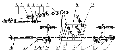 10.螺栓 11.螺母 12.墊圈 13.托板 14.圓管 15.螺栓 16.墊圈 17.支座