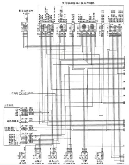 1)方向桿故障 2)組合開關電源故障 以下線束與電源短路,與機箱接地短路,觸點有故障或斷開: 3)變速箱和操縱桿控制器C3B(雌)(7)和L04(5)之間線束 4)變速箱和操縱桿控制器C3B(雌)(15)和L04(6)之間線束 5)變速箱和操縱桿控制器C3B(雌)(8)和L04(7)之間線束 6)變速箱和操縱桿控制器C3B(雌)(16)和L04(8)之間線束 7)變速箱和操縱桿控制器故障 |