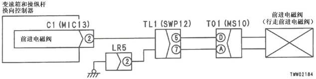 1)F電池閥故障 2)變速箱和操縱桿控制器C1(雌)(2)-TL1(5)-T01(D)之間線束與電源短路,與機箱接地短路,觸點有故障或斷開 3)機箱-TL1(7)-T01(A)之間線束與機箱接地短路,觸點有故障或斷開 4)變速箱和操縱桿控制器有故障 | ||||