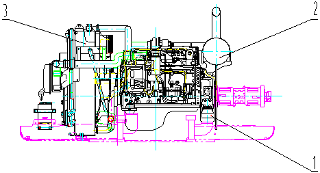 1-減震及傳動(dòng)系統(tǒng) 2-排氣系統(tǒng) 3-冷卻系統(tǒng)