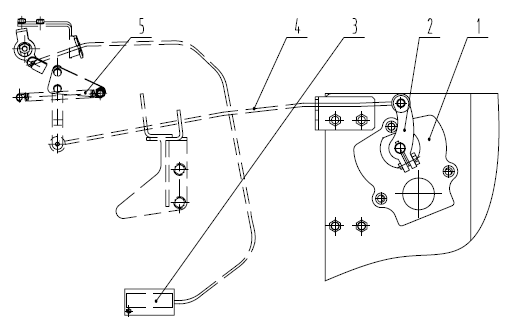 1- 步進(jìn)電機(jī) 2-曲柄總成 3-熄火裝置 4-連桿 5-油門擺桿